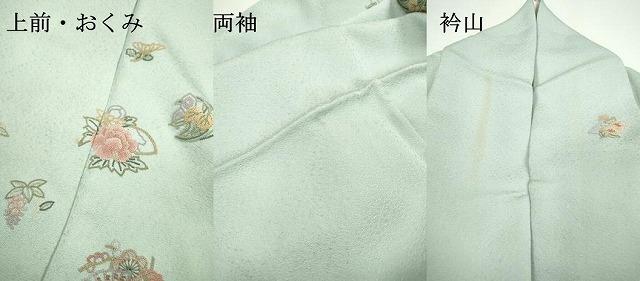 状態は接写画像のように上前・おくみ・両袖・衿山に薄い汚れがございますが