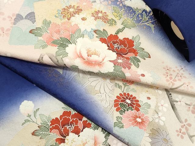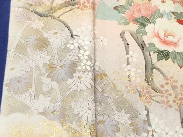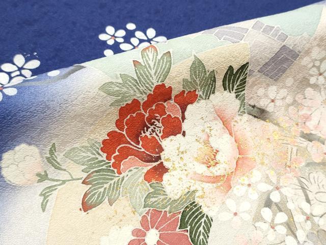 Heiwa-ya Kimono ▼ Tsukesage (folded kimono fabric) Kimono fabric with floral patterns on paper and gold and silver accents Excellent condition Unused DAAZ4554we