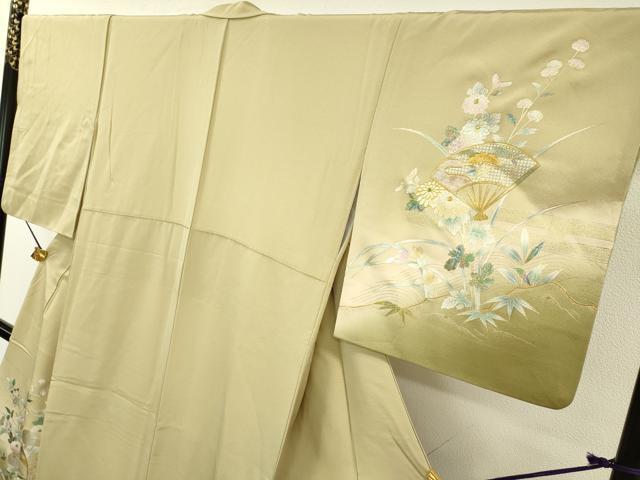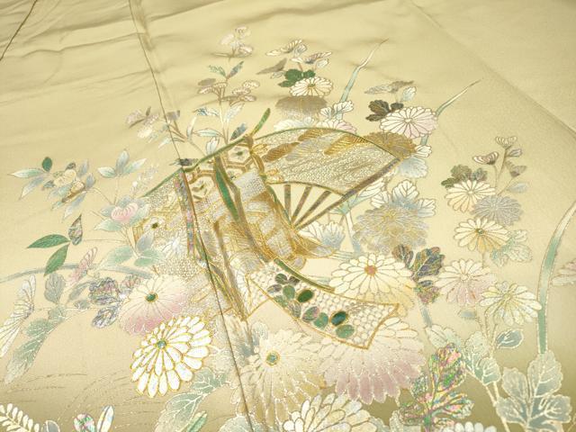Heiwa-ya Kimono ▼ Visiting Kimono, Mother-of-Pearl Inlay, Fan-Shaped Screen with Floral Design, Gradient Dye, Gold and Silver Accents, Pure Silk, Excellent Item, DAAZ6878fe