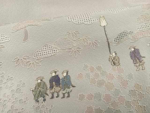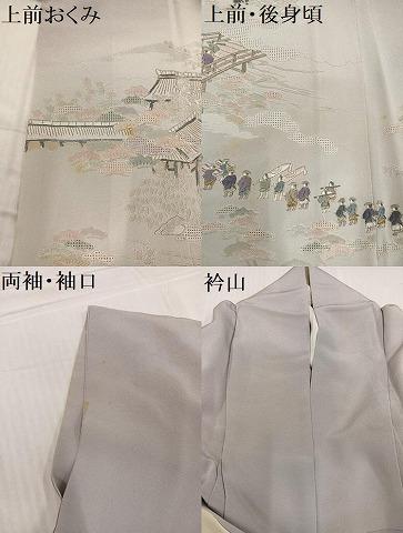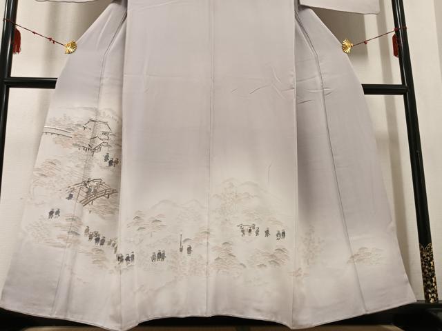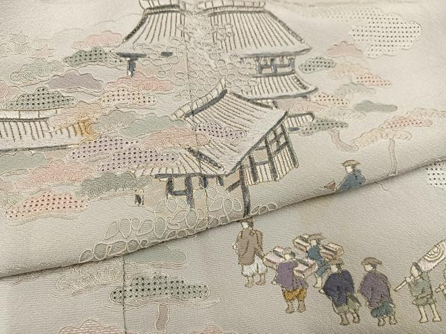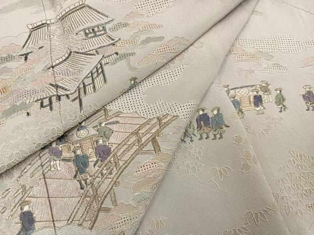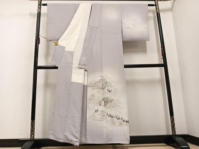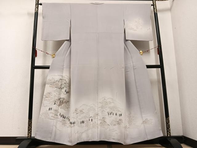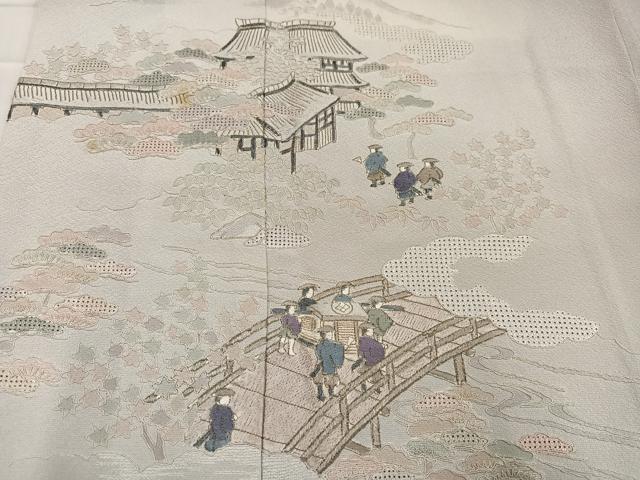 Heiwa-ya Kimono ▼ Visiting Kimono, Shantou Embroidery, One of the Three Great Embroideries of China, with a Bridge and Landscape Design, Pure Silk, Excellent Item, AABD6548ph