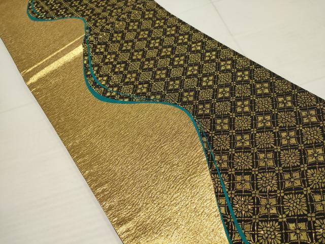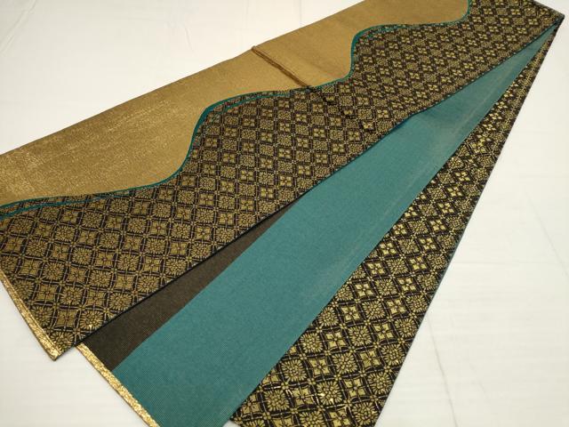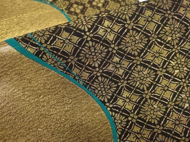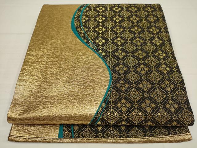 Heiwa-ya Kimono ▼Full-length Fukuro Obi (Sash) with a Yoroke Hanabishi (Diamond) Design, Black with Gold Thread, Pure Silk, Excellent Item, AABB4636wj