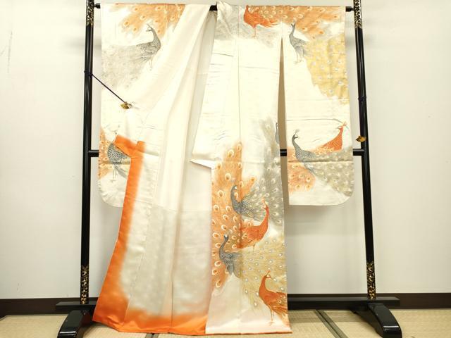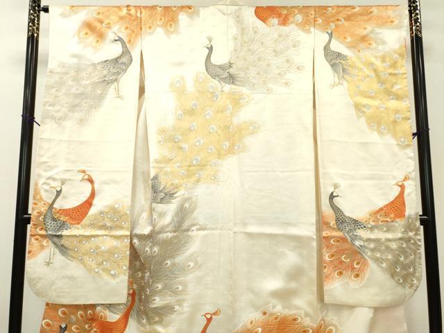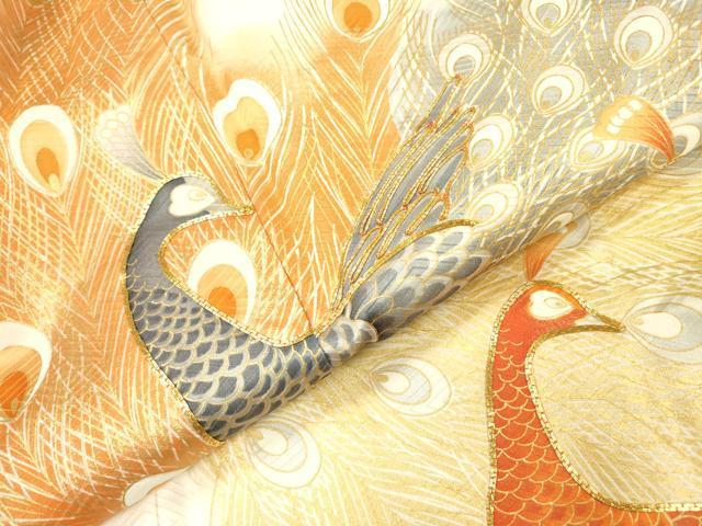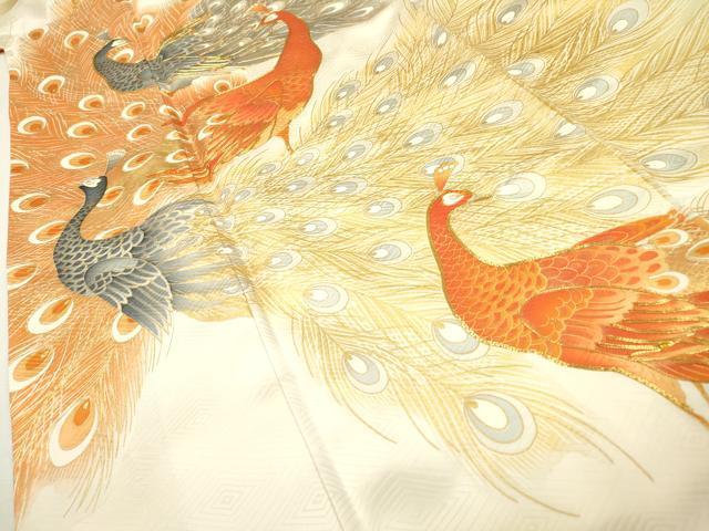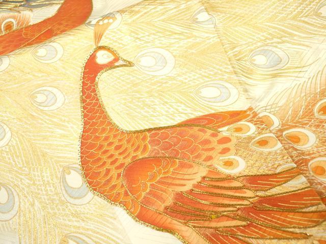 Heiwa-ya Kimono ▼Luxurious Furisode Kimono with Koma Embroidery, Peacock Design, Gold Accents, Pure Silk, Excellent Quality, DAAZ6832fe