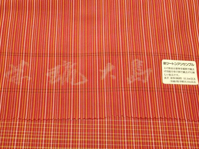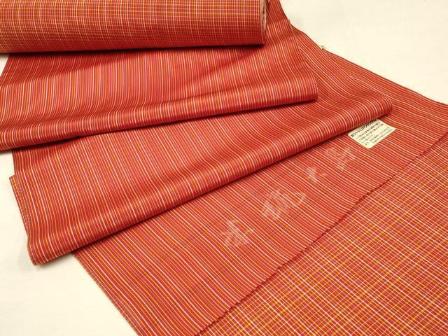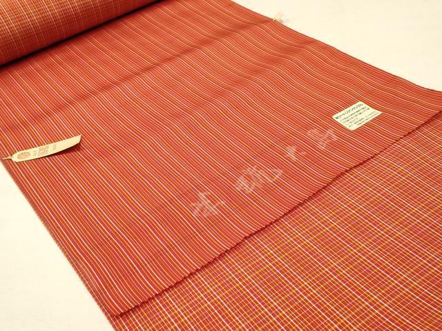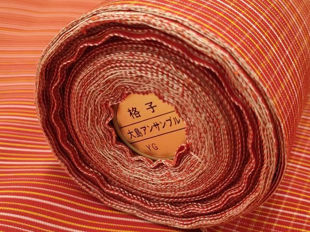 Heiwa-ya Kimono ▼Meryu Oshima Tsumugi Ensemble, Roll of Kimono Fabric, Kimono Measure + Haori Measure, Striped and Checkered, Excellent Condition, Unused, AAAX3705ay