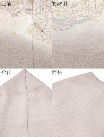 状態は接写画像のように上前に薄いシミ、後身頃・衿山・両袖に薄い汚れがございますが