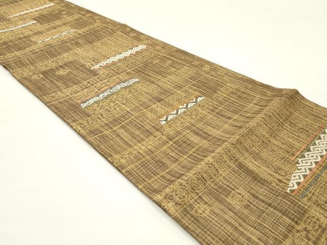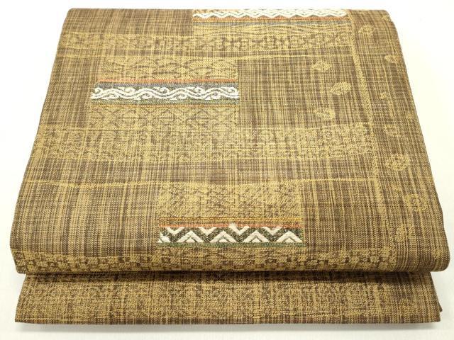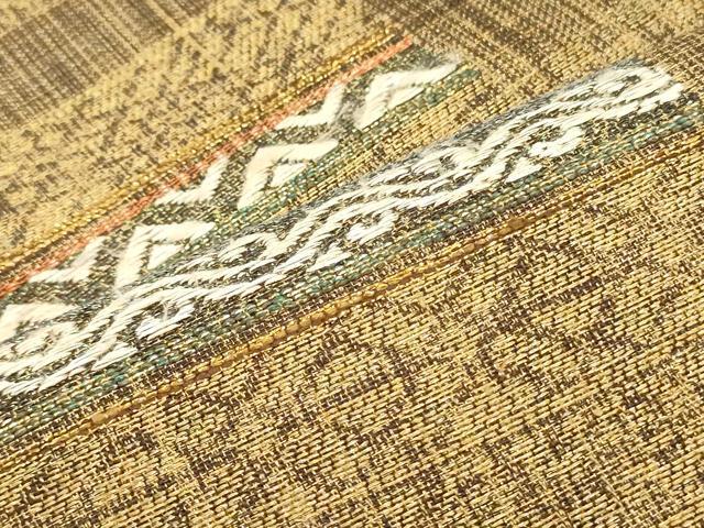 Heiwa-ya Kimono ▽ 9-inch Nagoya Obi (Sash) Three-Season, Spring, Summer, Autumn, Geometric Pattern, Gold Thread, Pure Silk, Excellent Item, DAAZ3164ob