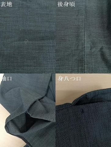 状態は接写画像のように表地所々に薄い汚れ、後身頃に変色、袖口にほつれ、身八つ口に穴がございます。