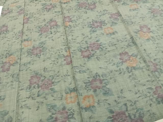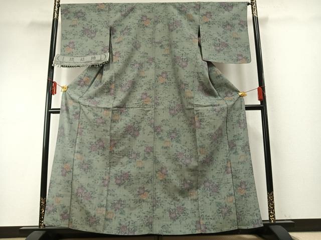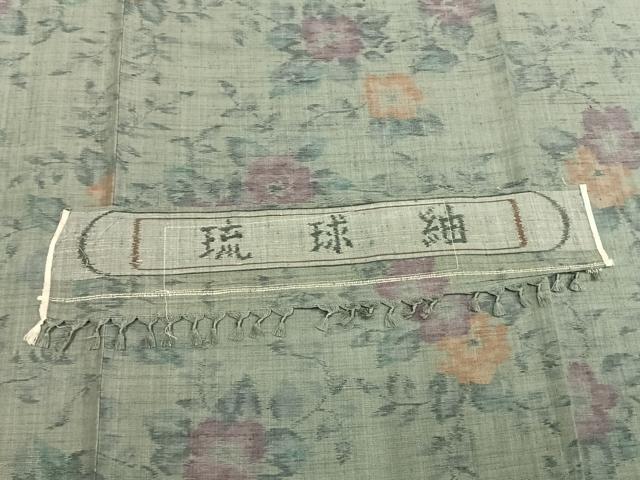 Heiwa-ya Kimono ▽ Ryukyu Tsumugi Single-Layer Kimono with Branch and Flower Pattern, Includes Closure, Pure Silk, Excellent Condition, Unused, AABE5634fy