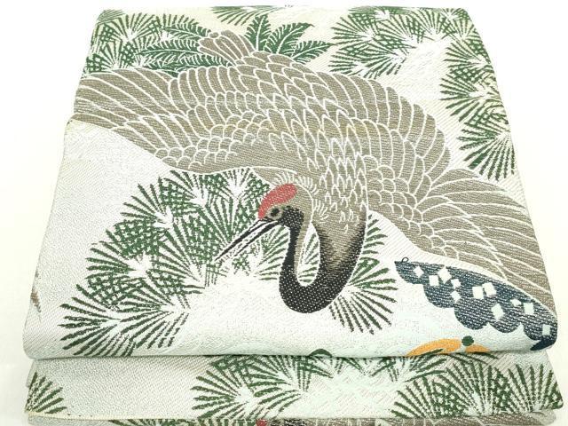 Heiwa-ya Kimono ◎ Antique Taisho Romantic All-Over Pattern Maru Obi (Sash) Karaori (Chinese Weave) Flying Crane, Branches, and Pine Design Pure Silk Excellent Item DABA9176qa