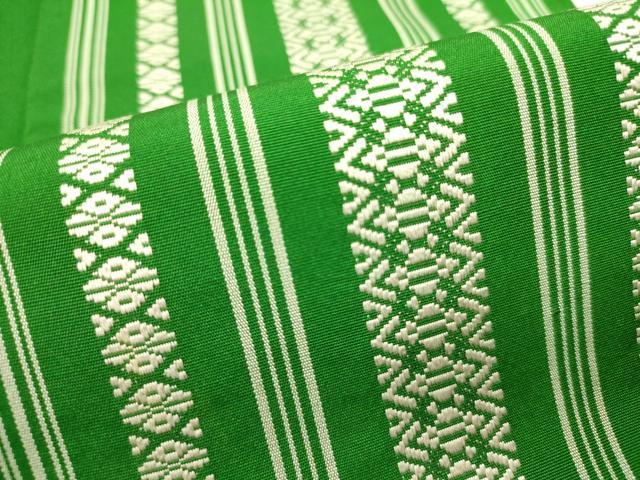 仏具のひとつである独鈷、華皿を基にした幾何学模様が織られています。
