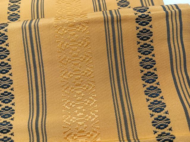 仏具のひとつである独鈷、華皿を基にした幾何学模様が織られています。
