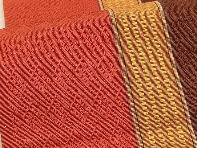 仏具のひとつである独鈷、華皿を基にした幾何学模様が織られています。