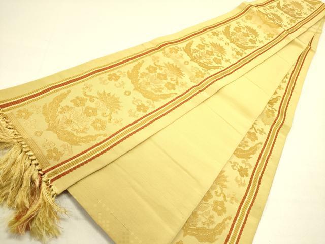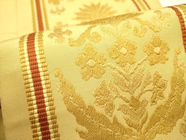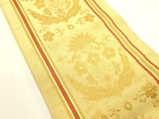 Heiwa-ya Kimono ◎ Authentic Chikuzen Hakata-ori Half-Width Obi with Floral Design, Pure Silk, Excellent Item, DABA6463op