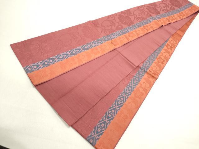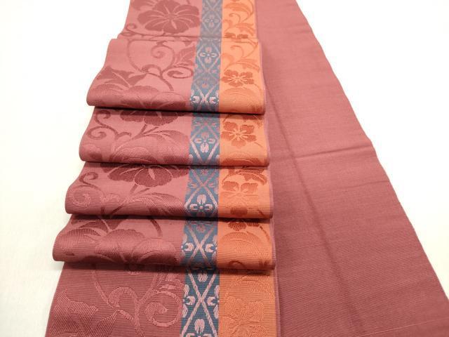 Heiwa-ya Kimono ◎ Authentic Chikuzen Hakata-ori Half-Width Obi with Flower Arabesque Pattern, Pure Silk, Excellent Item, DAAZ5786ea