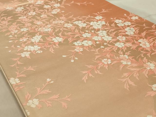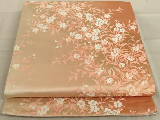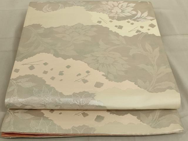 Heiwa-ya Kimono ◎ Double-sided six-pass pattern obi, Karaori weave, floral design, silver thread, pure silk, exquisite item AABD3757ou