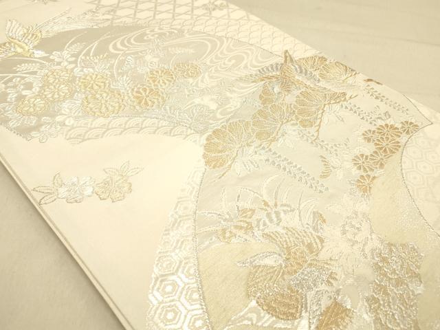 Heiwa-ya Kimono ◎ Full-length Fukuro Obi (Sash) with Miho-gata (Flower and Bird Design) - Pure Silk, Excellent Item, DABA2153ya