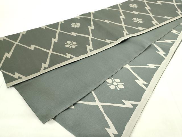 Heiwa-ya Kimono ◎ Full-length Kyoto Obi with Pine Bark Diamond and Flower Pattern, Pure Silk, Excellent Item, DABA5780qp
