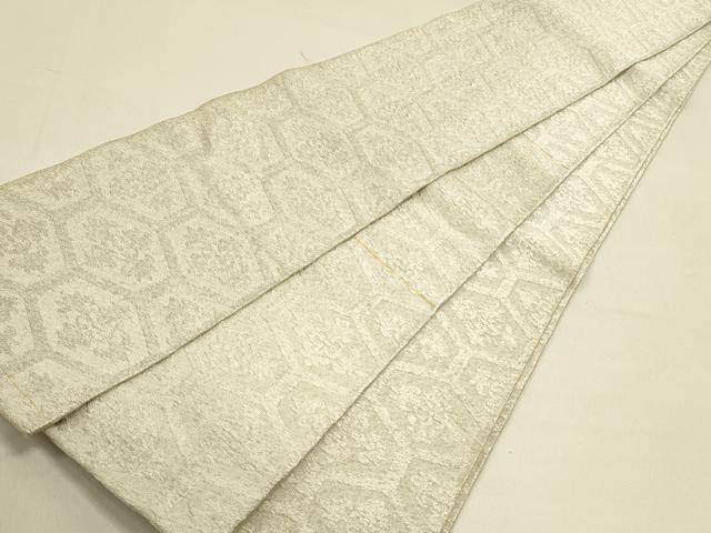 Heiwa-ya Kimono ◎ Half-width Obi with Tortoiseshell and Floral Pattern, Silver Thread, Pure Silk, Excellent Item, DABA6461op