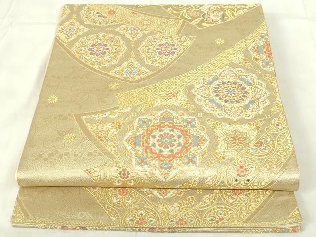 Heiwa-ya Kimono ◎ Nishijin six-pass pattern obi, noshi chintz floral design, gold thread, pure silk, exquisite item DABA5736qp