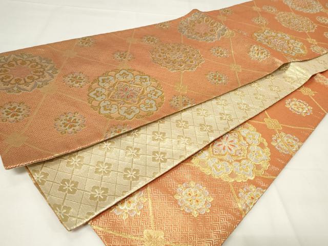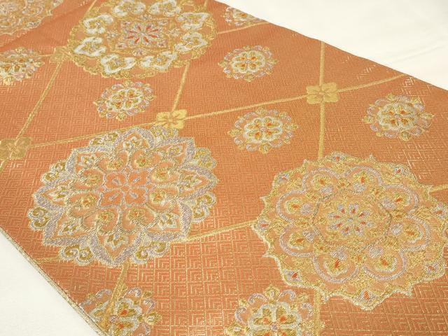 Heiwa-ya Kimono ◎ Saga Nishiki Six-Piece Pattern Obi with Diamond-Shaped Shosoin Flower Design, Gold and Silver Thread, Pure Silk, Excellent Quality, CAAY2208in