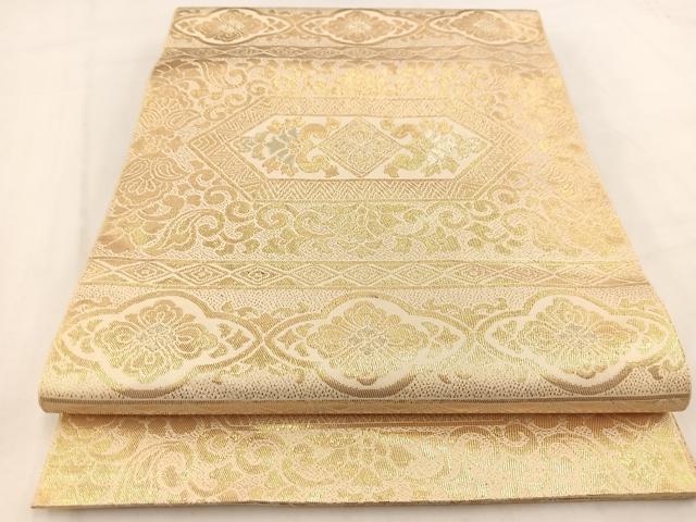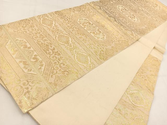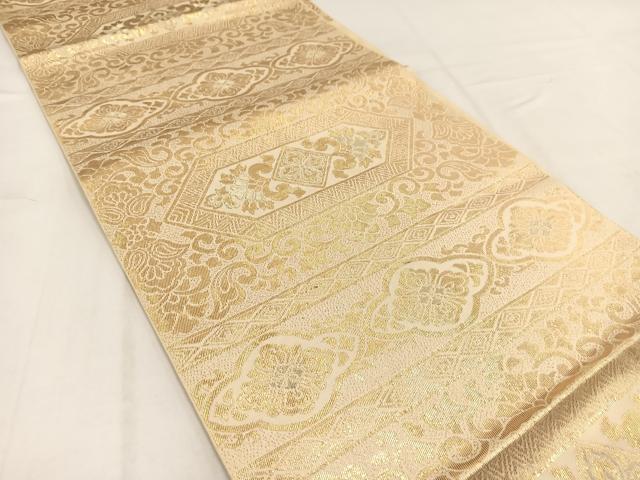 Heiwa-ya Kimono ◎ Six-pass pattern genuine bag obi with horizontal stripes, floral design, gold thread, pure silk, exquisite item BAAV7775yc