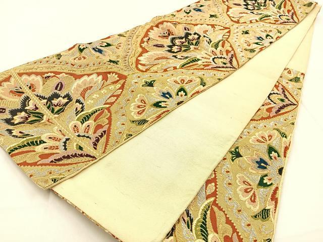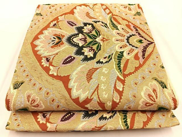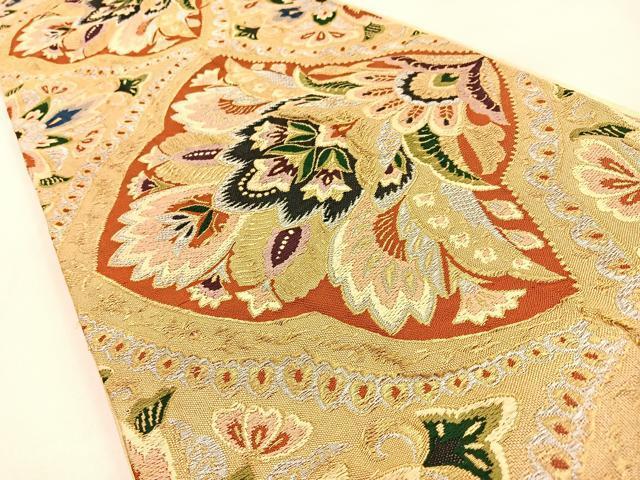Heiwa-ya Kimono ◎ Six-pass pattern obi, Karaori, Sarasa floral design, gold and silver thread, pure silk, exquisite item BAAW0290hj