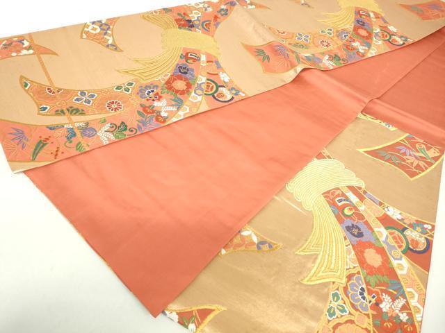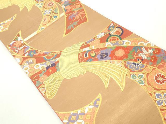 Heiwa-ya Kimono ◎ Six-pass pattern obi, Karaori weave, bundled noshi with floral design, gold thread, pure silk, exquisite item DAAZ8910qa
