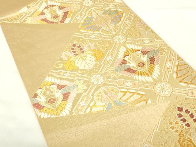 Heiwa-ya Kimono ◎ Six-pass pattern obi, Karaori weave, ceiling flower and bird design, crane, gold thread, pure silk, exquisite item, DAAZ9181qp