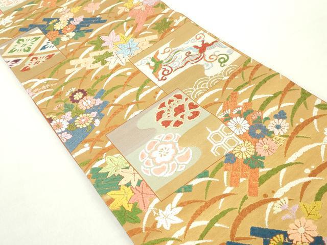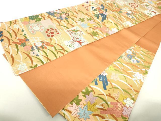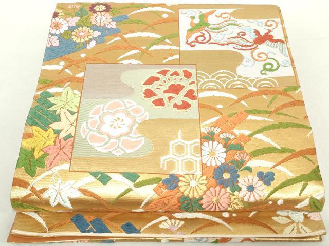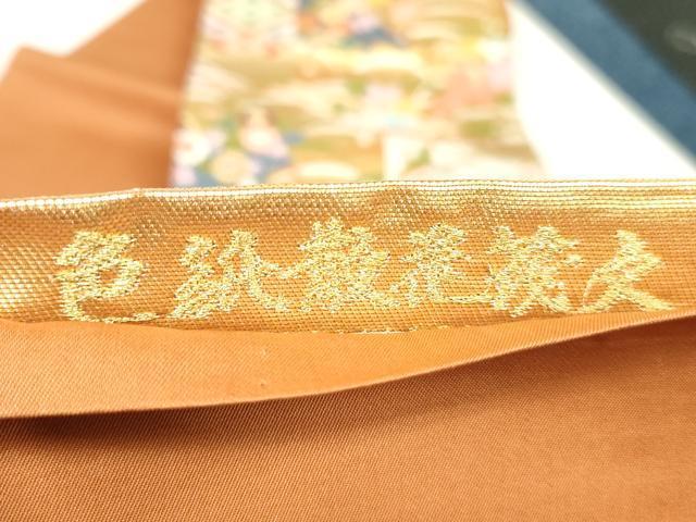 Heiwa-ya Kimono ◎ Six-pass pattern obi, Karaori weave, colored paper with scattered flower and raft design, gold thread, pure silk, exquisite item, DABA9189qa
