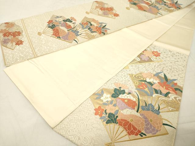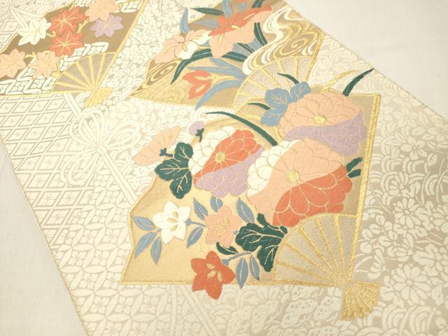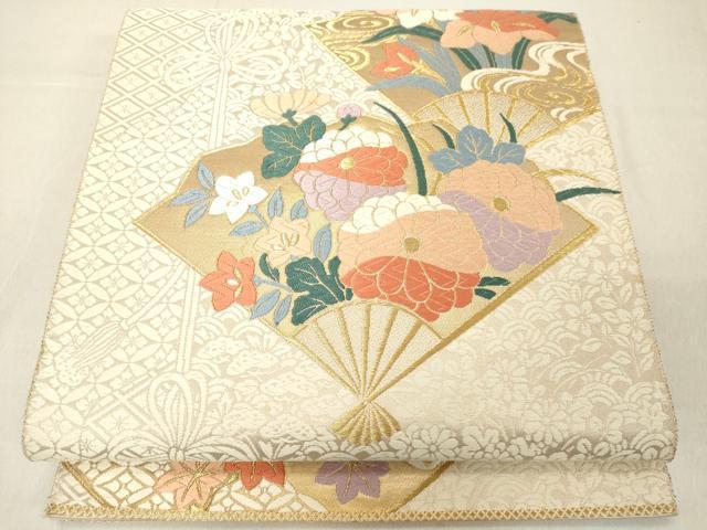 Heiwa-ya Kimono ◎ Six-pass pattern obi, Karaori weave, fan-shaped floral design, gold thread, pure silk, exquisite item, DAAZ8294cd