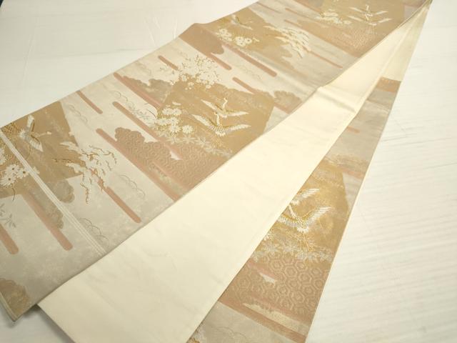 Heiwa-ya Kimono ◎ Six-pass pattern obi, Karaori weave, flying crane and flower design, gold and silver thread, pure silk, exquisite item, DABA2144ya