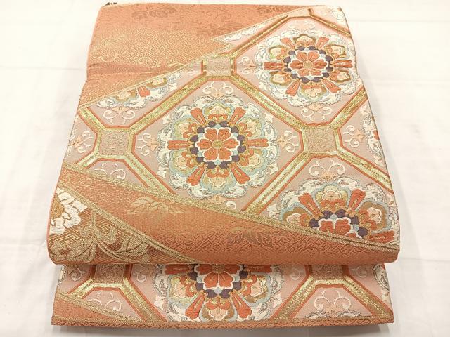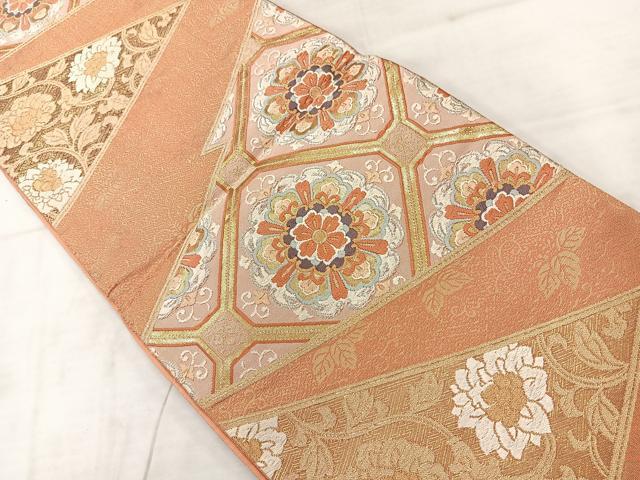 Heiwa-ya Kimono ◎ Six-pass pattern obi, Karaori weave, inlaid floral design, gold and silver thread, pure silk, exquisite item, AABC9097uk