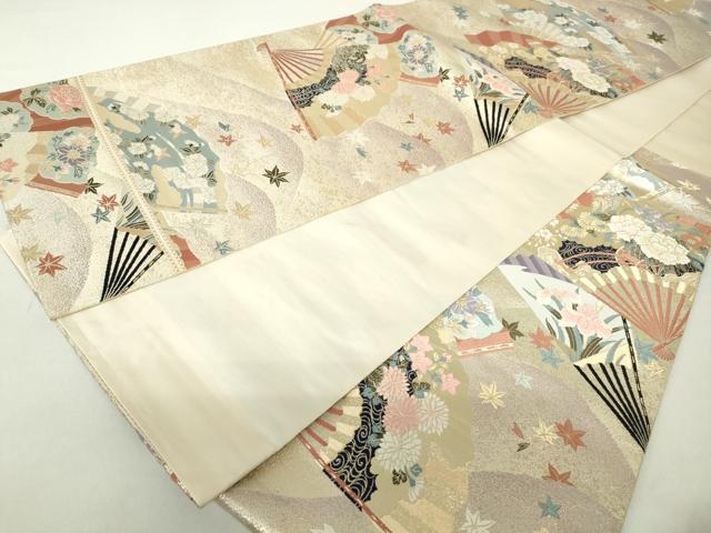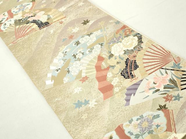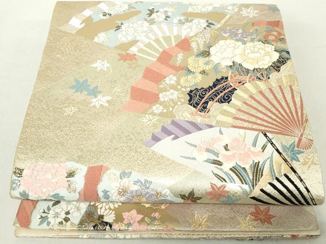 Heiwa-ya Kimono ◎ Six-pass pattern obi, Karaori weave, Manyo fan pattern, gold and silver thread, pure silk, exquisite item, DABA9220qa