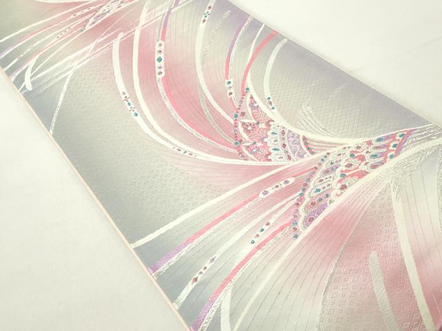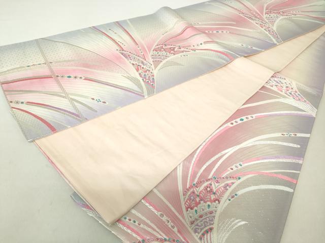 Heiwa-ya Kimono ◎ Six-pass pattern obi, Karaori weave, peacock design, silver thread, pure silk, exquisite item, DABA9221qa