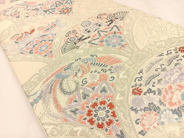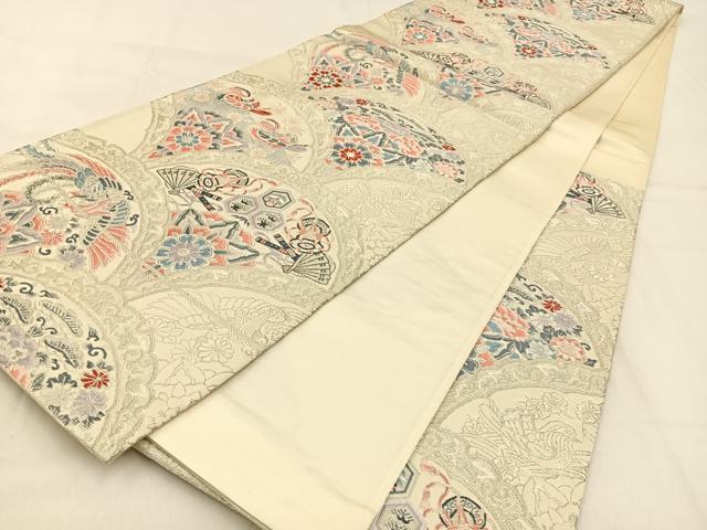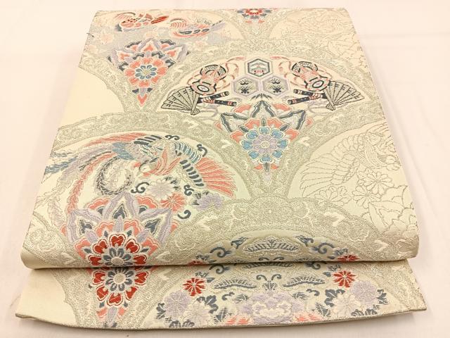 Heiwa-ya Kimono ◎ Six-pass pattern obi, Karaori weave, Seikaikamon (flower pattern), silver thread, pure silk, exquisite item, BAAW0582hj