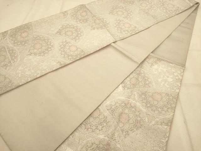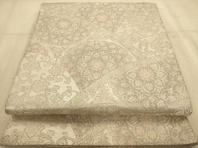 Heiwa-ya Kimono ◎ Six-pass pattern obi, Karaori weave, Shosoin floral design, silver thread, pure silk, exquisite item AABB1565dt