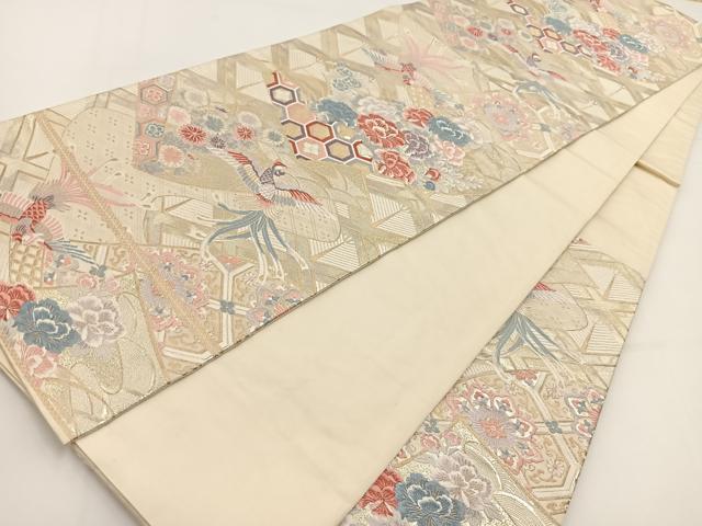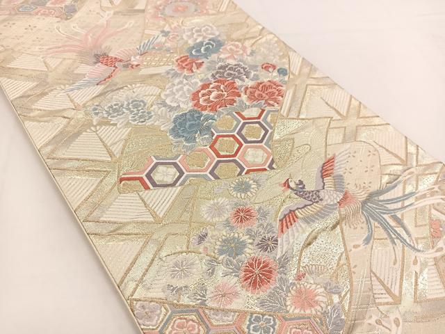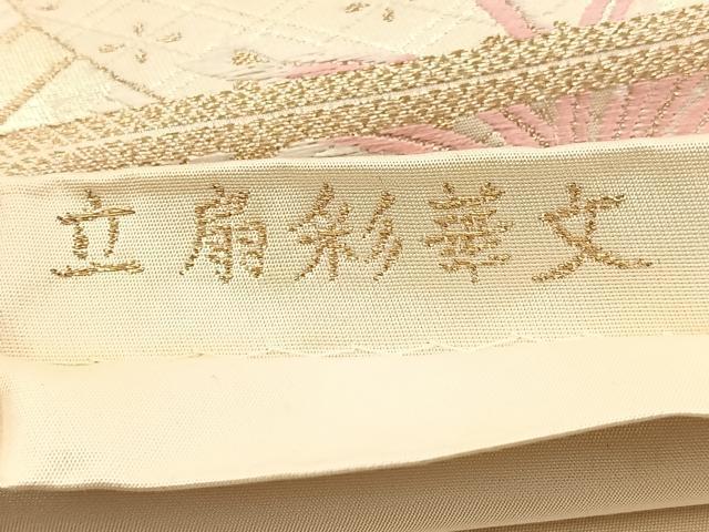 Heiwa-ya Kimono ◎ Six-pass pattern obi, Karaori weave, standing fan colored floral pattern, gold and silver thread, pure silk, exquisite item, BAAV7417yc