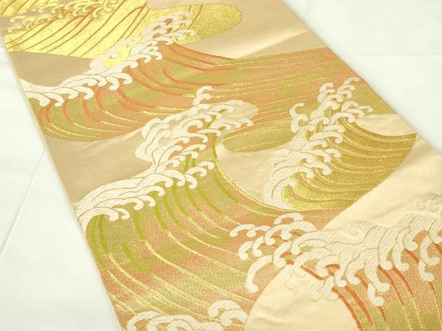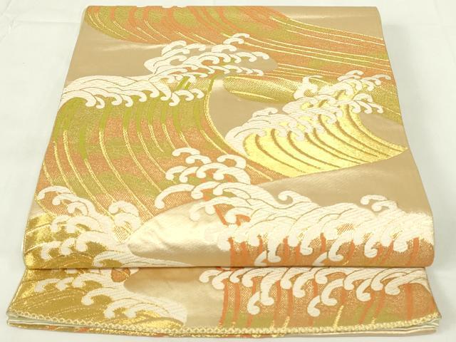 Heiwa-ya Kimono ◎ Six-pass pattern obi, Karaori weave, standing wave pattern, gold thread, pure silk, exquisite item DAAZ9061qp