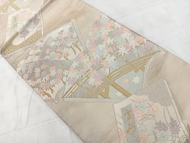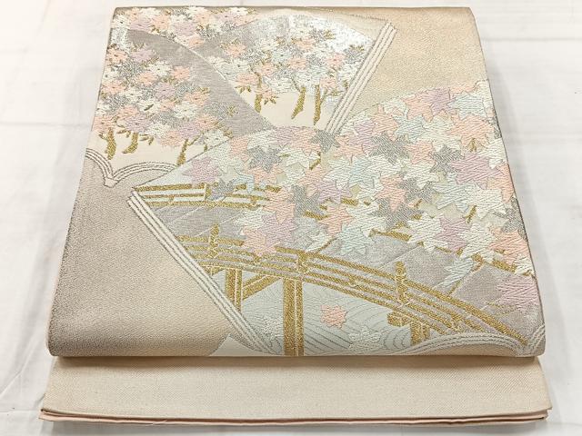 Heiwa-ya Kimono ◎ Six-pass pattern obi, Karaori weave, Wataribashi flower design, gold and silver thread, pure silk, exquisite item, AABC9099uk