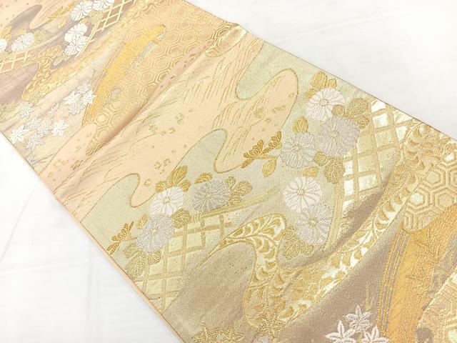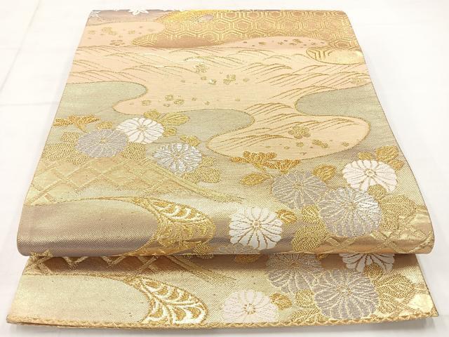 Heiwa-ya Kimono ◎ Six-pass pattern obi, Karaori weave, Wataribashi flower design, gold and silver thread, pure silk, exquisite item, AABC8958uk