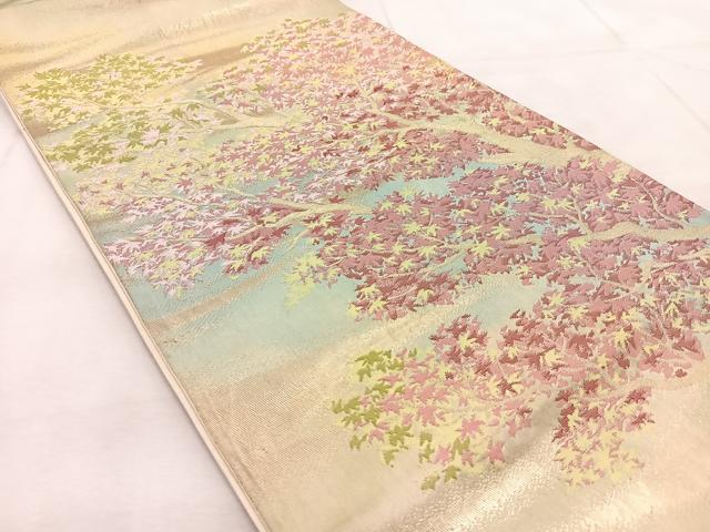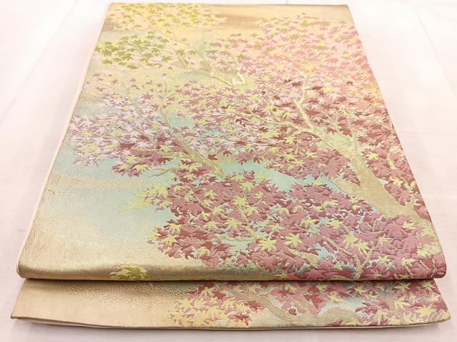 Heiwa-ya Kimono ◎ Six-pass pattern obi, maple leaf, gold thread, drawn foil, pure silk, exquisite item, BAAU9306yc