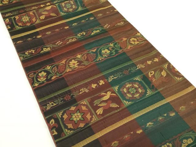 Heiwa-ya Kimono ◎ Six-pass pattern obi, puffed weave, chintz floral and bird design, pure silk, from Suzunoya, exquisite item, DAAT8439qp