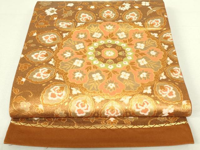 Heiwa-ya Kimono ◎ Six-pass pattern obi (sash) with Shosoin floral design, gold thread, pure silk, exquisite item DAAY6942qp