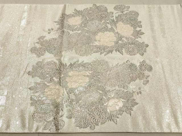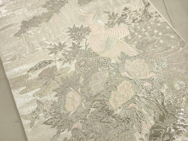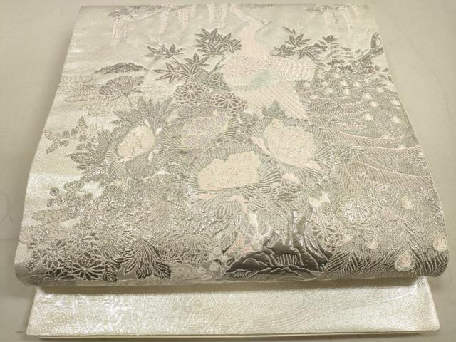 Heiwa-ya Kimono ◎ Six-pass pattern obi, Tang weave, with a floral and bird garden design from the dynasty, silver thread, pure silk, exquisite item, DABA8068xg