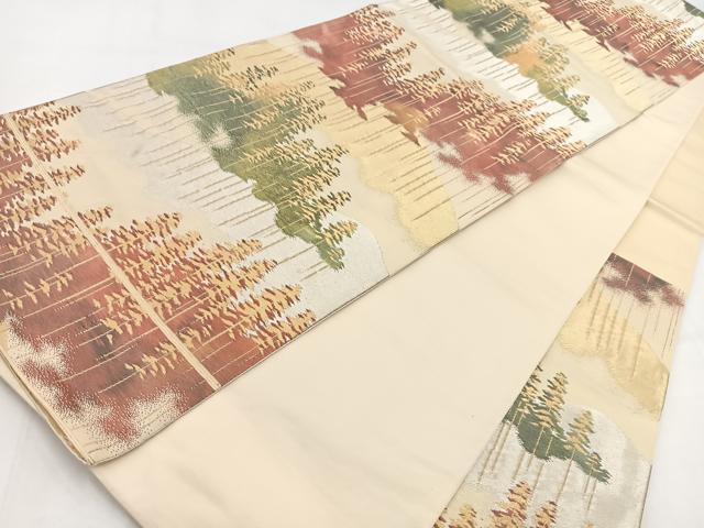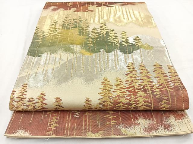 Heiwa-ya Kimono ◎ Six-pass pattern obi with a Toyama forest design, gold and silver thread, pure silk, exquisite item BAAV7810yc