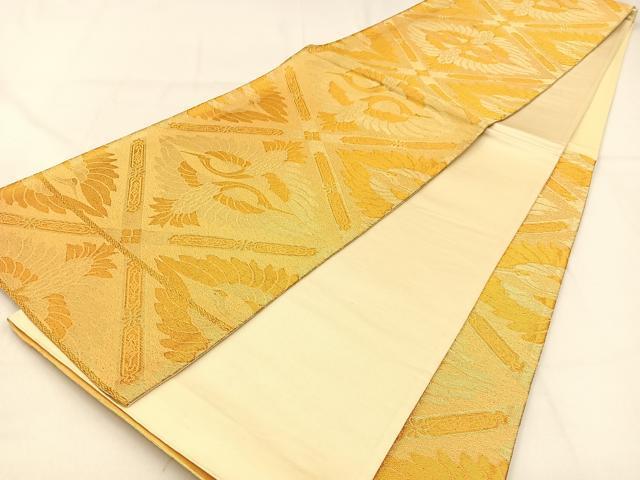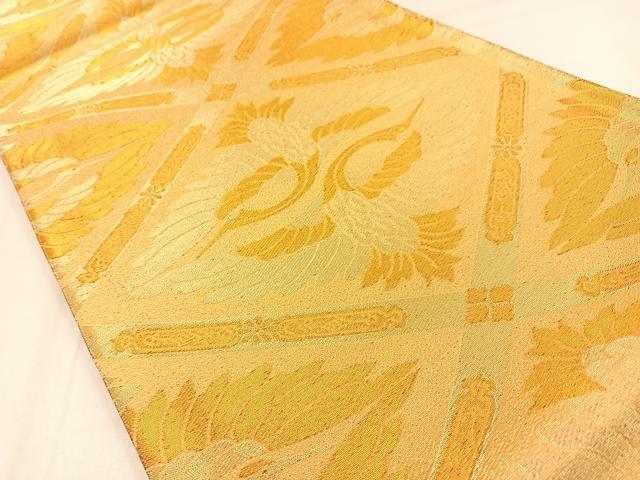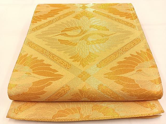 Heiwa-ya Kimono ◎ Six-pass pattern obi with double crane and diamond ceiling pattern, gold thread, pure silk, exquisite item BAAW0571hj