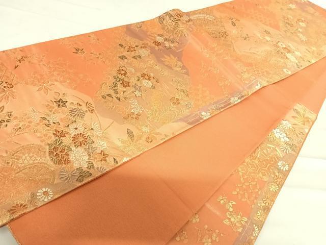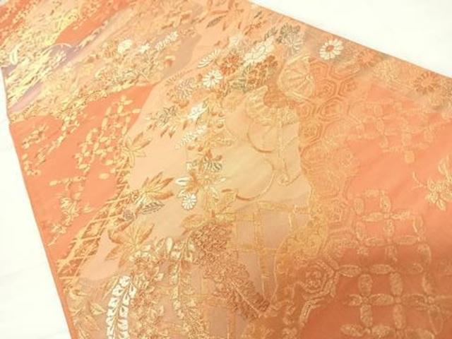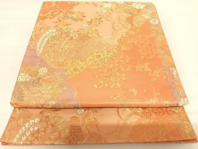 Heiwa-ya Kimono ◎ Six-pass pattern obi with floral motifs, wisteria tassels, gold thread, pure silk, exquisite item AABC4723yx