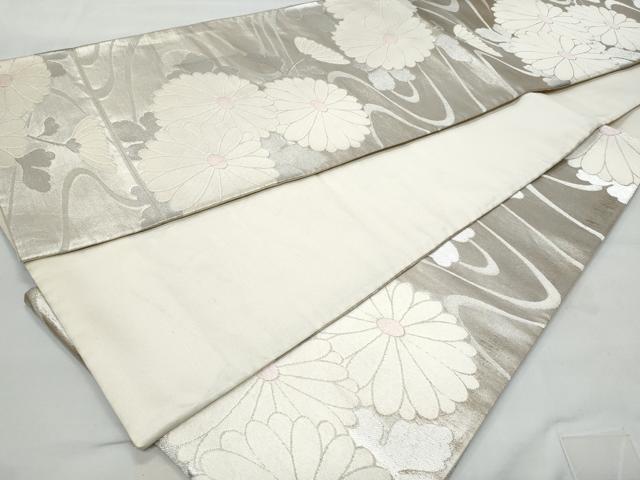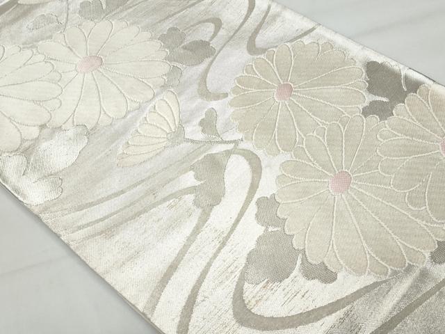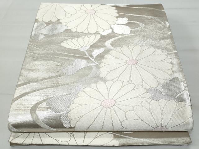 Heiwa-ya Kimono ◎ Six-pass pattern obi with flowing water and chrysanthemum design, silver thread, pure silk, exquisite item, CABA7950fb
