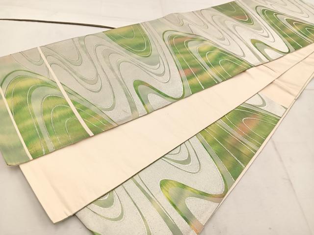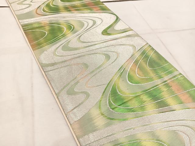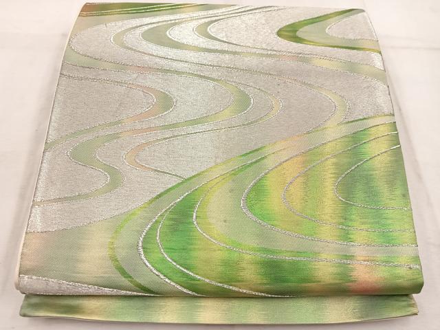 Heiwa-ya Kimono ◎ Six-pass pattern obi with flowing water design, silver thread, and gold leaf. Pure silk. Excellent quality. BAAW1585mz