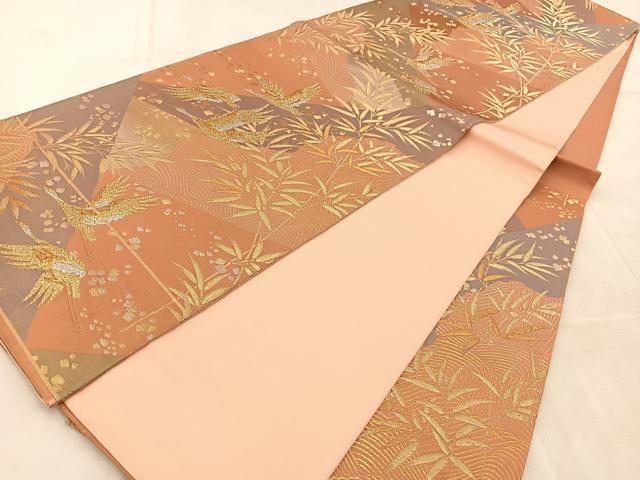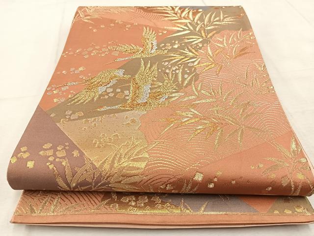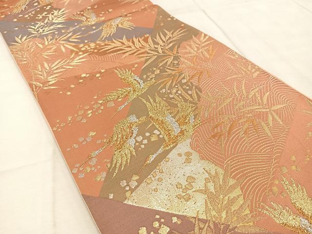 Heiwa-ya Kimono ◎ Six-pass pattern obi with flying cranes and bamboo, gold and silver thread, pure silk, exquisite item, BAAU9606yc