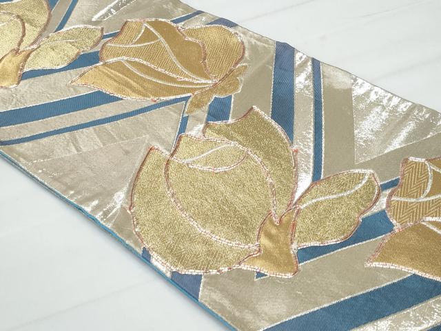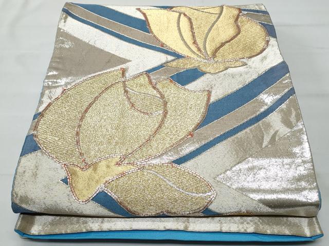 Heiwa-ya Kimono ◎ Six-pass pattern obi with Koma embroidery and dancing flower motifs, gold and silver thread, pure silk, exquisite item, CABA7937fb